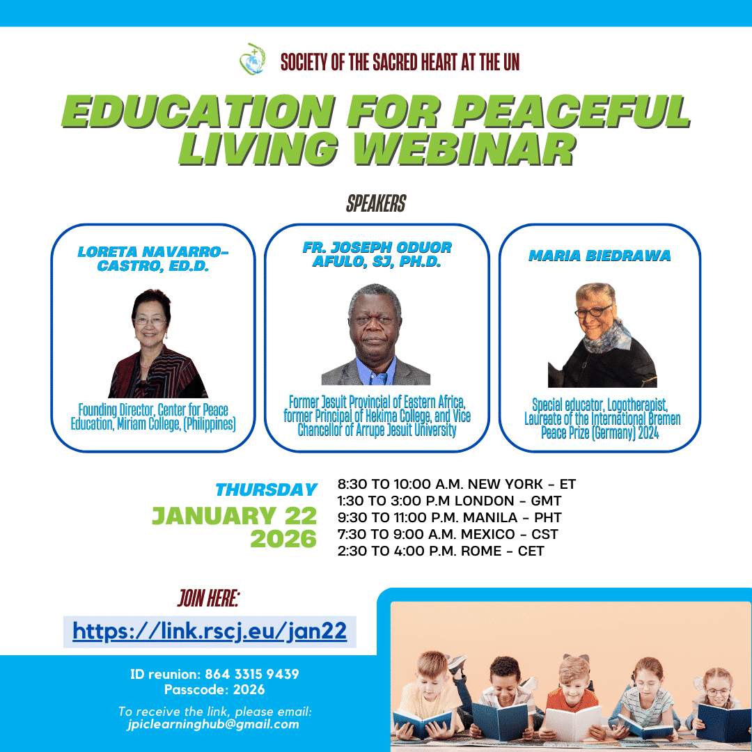 Artisans of Peace is a peace-building initiative that will run from September 2026 to May 2027 across the international Sacred Heart family. The project aims to strengthen skills for peacebuilding, empower future peace advocates, and foster connections among RSCJ, schools, and popular education initiatives around the world. We are placing special emphasis on engaging Sacred Heart schools and popular education structures to help form the next generation of Artisans of Peace.