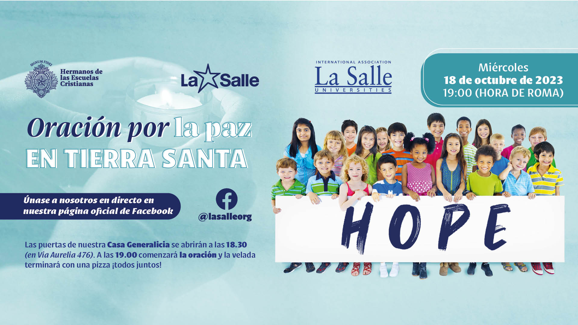Los Hermanos de las Escuelas Cristianas en comunión con las comunidades lasallistas en Tierra Santa, y en articulación con la Asociación Internacional de Universidades Lasallistas (IALU, por sus siglas en inglés) y La Salle Foundation, nos unimos a las intenciones del Papa Francisco por la finalización de la guerra, a través de la celebración de una Oración por la Paz en Tierra Santa.
