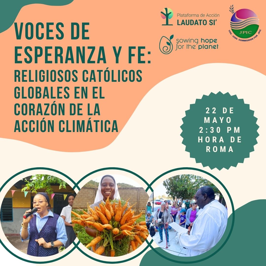 Mientras nos preparamos para celebrar la Semana Laudato Si 2024, titulada «Semillas de Esperanza», el Sector Religioso de la Plataforma de Acción Laudato Si, en colaboración con Sembrando Esperanza para el Planeta UISG y la Comisión de Justicia, Paz e Integridad de la Creación de la Unión Internacional de Superiores y Superioras, le invita al webinar ‘Voces de Esperanza y Fe: Religiosos Católicos Globales en el Corazón de la Acción Climática’.