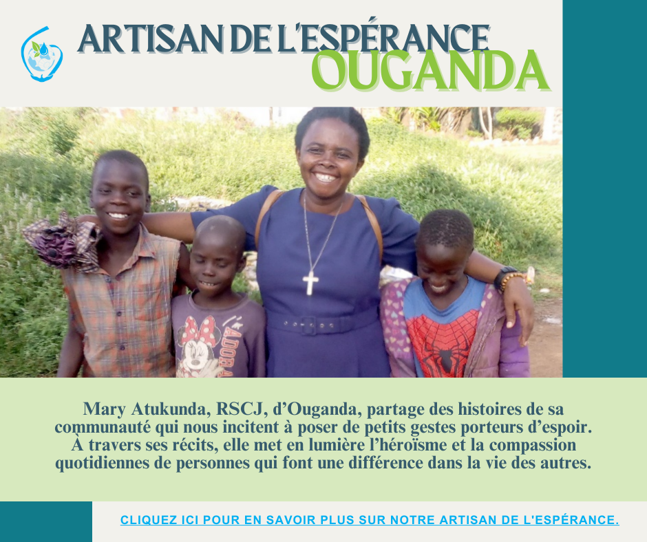 Mary Atukunda RSCJ, d’Ouganda, partage des histoires de sa communauté qui nous incitent à poser de petits gestes d’espoir. À travers ses récits, elle met en lumière l’héroïsme et la compassion quotidiennes de personnes qui font une différence dans la vie des autres.