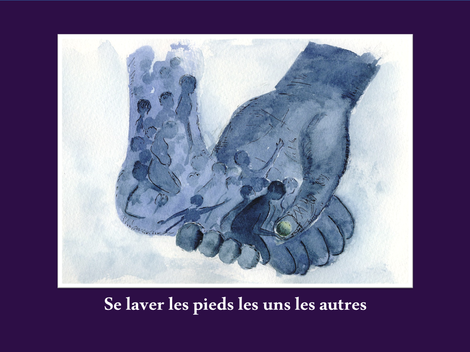 Parfois, arrêtez-vous en route, asseyez-vous, cherchez une rivière, un robinet, un peu d’eau et lavez-vous les pieds les uns les autres. Ecoutez votre histoire et la leur. En vous lavant les pieds les uns les autres, dites-vous « merveilles que fit pour nous le Seigneur, nous étions dans la joie » (Psaume 125). Qui sont vos compagnons de voyage, avec qui chanter maintenant ce psaume et trouver la force de marcher vers le mystère de l’Incarnation pour renaitre à nouveau dans notre monde?