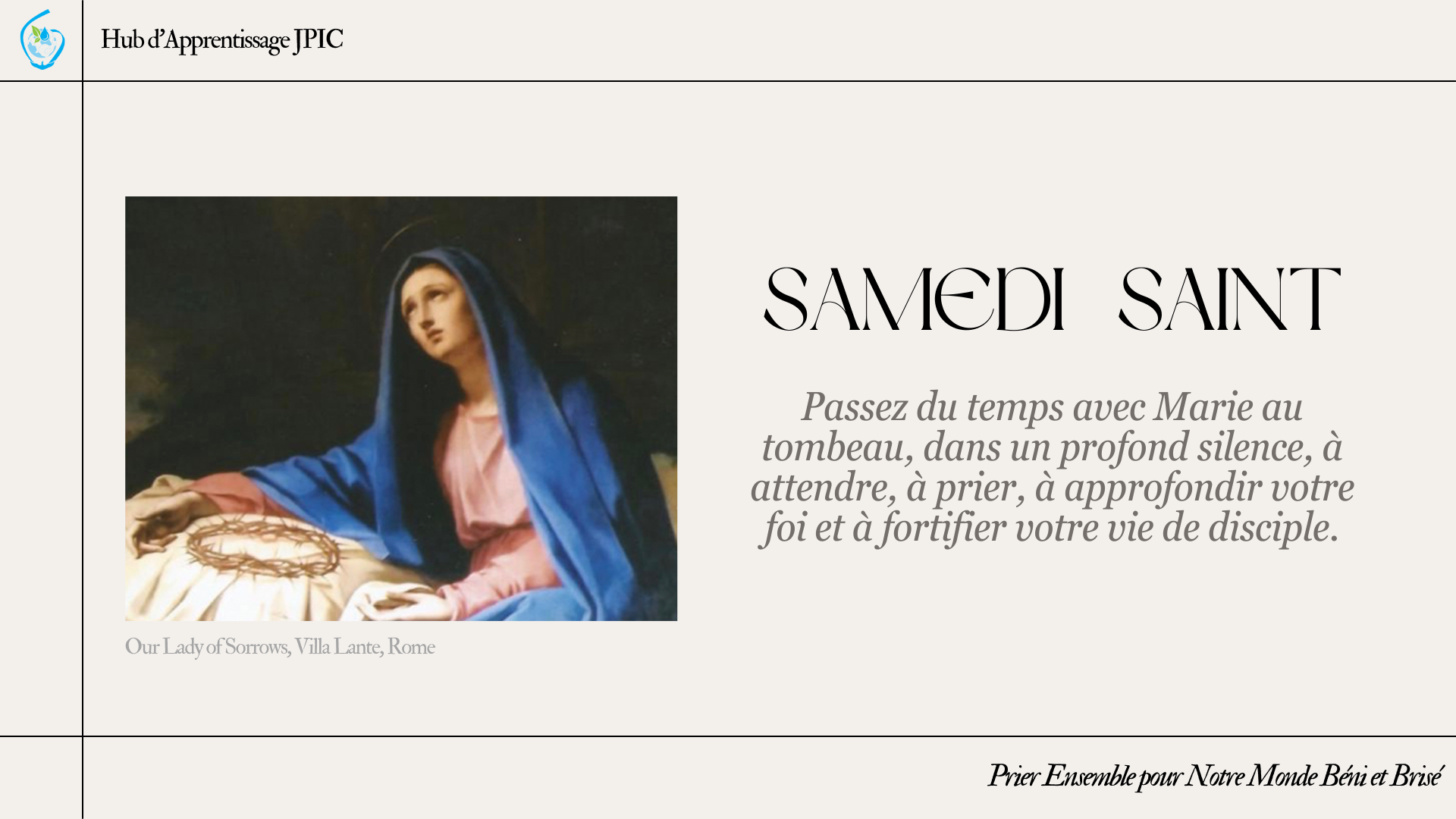 Cliquez ici pour télécharger le guide de prière du Samedi Saint.