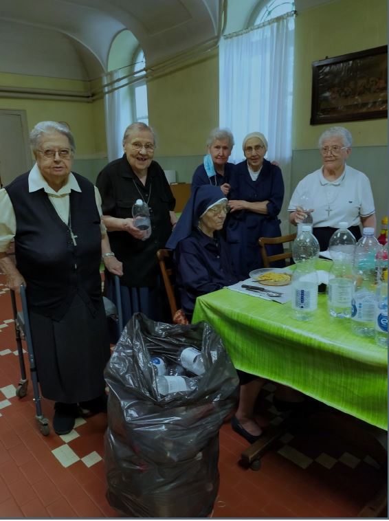 The Rifugio Fraternità Massi provides a main meal, shower facilities, a bed and breakfast. In June 2023, with the increase of migrant numbers and the high temperatures, drinking water was increasingly in demand. The Rifugio called to charities to supply them empty plastic bottle to be filled in with drinking water. The RSCJ Avigliana community responded to the call. The catering that provides them meals includes plastic bottles. RSCJ gather their empty bottles and have them arrive to the Rifugio Fraternità Massi with their prayers.