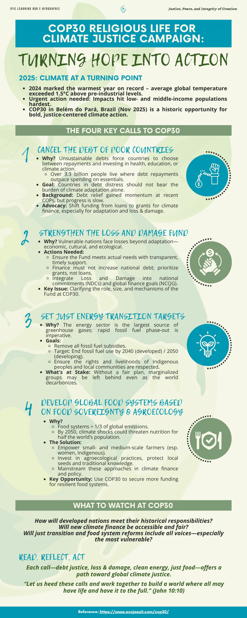Infographics on diverse JPIC topics—such as world religions, water access, and climate justice—crafted to share essential information and spark meaningful action.